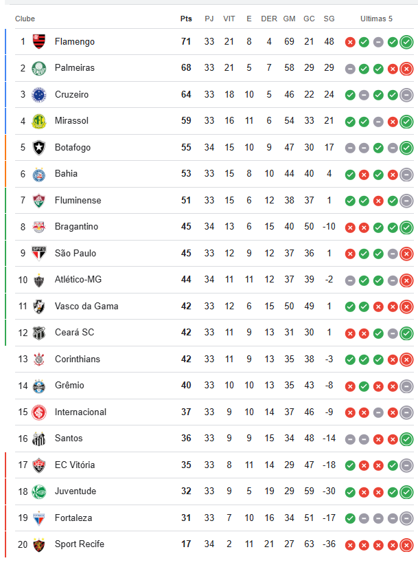 TABELA : O sport continua e vai continuar até o final da série a na lanterna da série a !